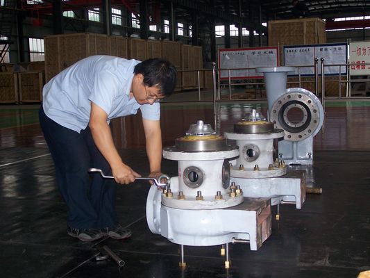 车工师傅熟练地摇着车床手柄,启动、进刀、走刀,铁屑咝咝地从车刀上流出来,同时热量也跟着“流”了出来,为本来已经很热的环境又增加了新的热度。豆大的汗珠从师傅们的头上滴落下来,但他们顾不得擦一下。铣床、磨床、镗床、钻床的师傅们也都是这样在埋头苦干。钳工师傅穿着汗水湿透的工作服,正在平板上聚精会神地给机身、蜗壳找基准,划加工线,只见他们不停地摁计算器,涂白、量尺寸、划线、打洋冲眼,工作得是有条不紊;电焊工穿着厚厚的防辐射工作服,戴上面罩,在高温天气里,在不停的焊接中,其滋味可想而知,但他们仍然无所畏惧的工作着,努力保证每一台透平膨胀机按时出厂。装配现场,装配工人认真地装配着每一台膨胀机和低温泵,在他们那双灵巧的手下,一台台产品装配出来送往用户现场。7月、8月他们生产的中海油90万方、大庆油田110万方各两套大型透平膨胀机已于8月中旬全部顺利封箱出厂。