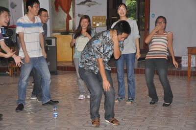 活动分为9月10日晚和9月11日上午两场,第一天晚上的活动以互相认识、才艺表演及抽奖为主。晚会从首先进行的兔子舞游戏开始,迅速活跃了现场气氛。抽奖环节中穿插了自我介绍游戏、表演等内容,让青年们以最特别的方式加深相互间的了解。今年新进公司的大学生也纷纷上场表演了精彩的节目,有合唱,有独唱,博得了热烈的掌声。尤其是宋丽娟、黄恩雄分别演唱的两首歌曲更是赢得了满堂喝彩。晚会最后进行了“winner就是我”的游戏,全体青年站成两排,面对面站好,石头剪子布决出胜利者,输的人手搭在赢得人身后,以此类推,最后全场决出最后一名胜利者,这个游戏将全场的气氛迅速推向了高潮,同时也将欢乐延续了一整晚。整个联欢晚会被欢声笑语烘托得十分热烈,让青年们更加有活力。晚会中大家还吃到了烤羊、烤鱼、月饼,在浓浓的节日气氛中提前度过了一个难忘的中秋佳节。