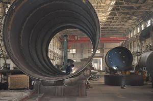 “当当当”一阵阵清脆的榔头声正招呼着这个火热的夏季。原来,这是冷作工师傅们正在实施现场接筒。他们是车间里的生力军,就像在足球场上的前锋一样,需要冲锋在前、攻城拔寨。接筒对冷作工来说是家常便饭,他们有时将筒体高高的叠起来连挂,有时又把筒体放倒在滚轮架上长龙卧虎般地“镶嵌”,他们手中的铁锤就如同那射雕的弯弓,确定了目标几乎就没有做不到的。他们这一身铁打的功夫也是从汗水中磨砺出的,他们手上的每一个老茧都可以说是给他们的一个勋章。