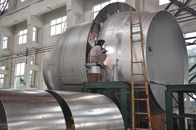 农历正月初三,车间内就想起了行车的轰鸣声、榔头的敲击声。钣二组承担了越南梅塞尔8500空分下塔主冷的制造,由于下塔筒体纵焊缝采用了双面自动焊新工艺,增加了筒体制作焊接时的难度。钣二组、氩二组员工在组长带领下,在质量和工艺人员的现场指导下,群策群力,加班加点,终于完成了筒体纵焊缝的焊接工作。现在,该产品已进入踏板装配阶段,为产品的按时交货打下了坚实的基础。钣七、钣八两个小组承担了四川煤气化2套36000空分的下塔制造,该产品筒体直径大,踏板数量多,两位组长合理安排生产进度,与焊工通力协作,已顺利完成踏板的装配工作,现正在进行与主冷凝器的复合工作。