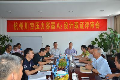杭州川空为了加强自主创新,强化新产品设计能力,促进公司转型升级,于2013年4月向国家质检总局申请了A2级压力容器设计取证。8月14-15日,由中国化工机械动力技术协会组织的专家评审组对杭州川空公司进行了为期两天的A2级压力容器设计现场鉴定评审。