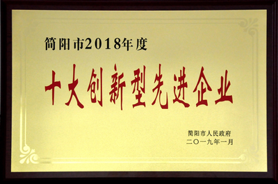近日,我公司被简阳市人民政府授予简阳市2018年度“十大创新型先进企业”。